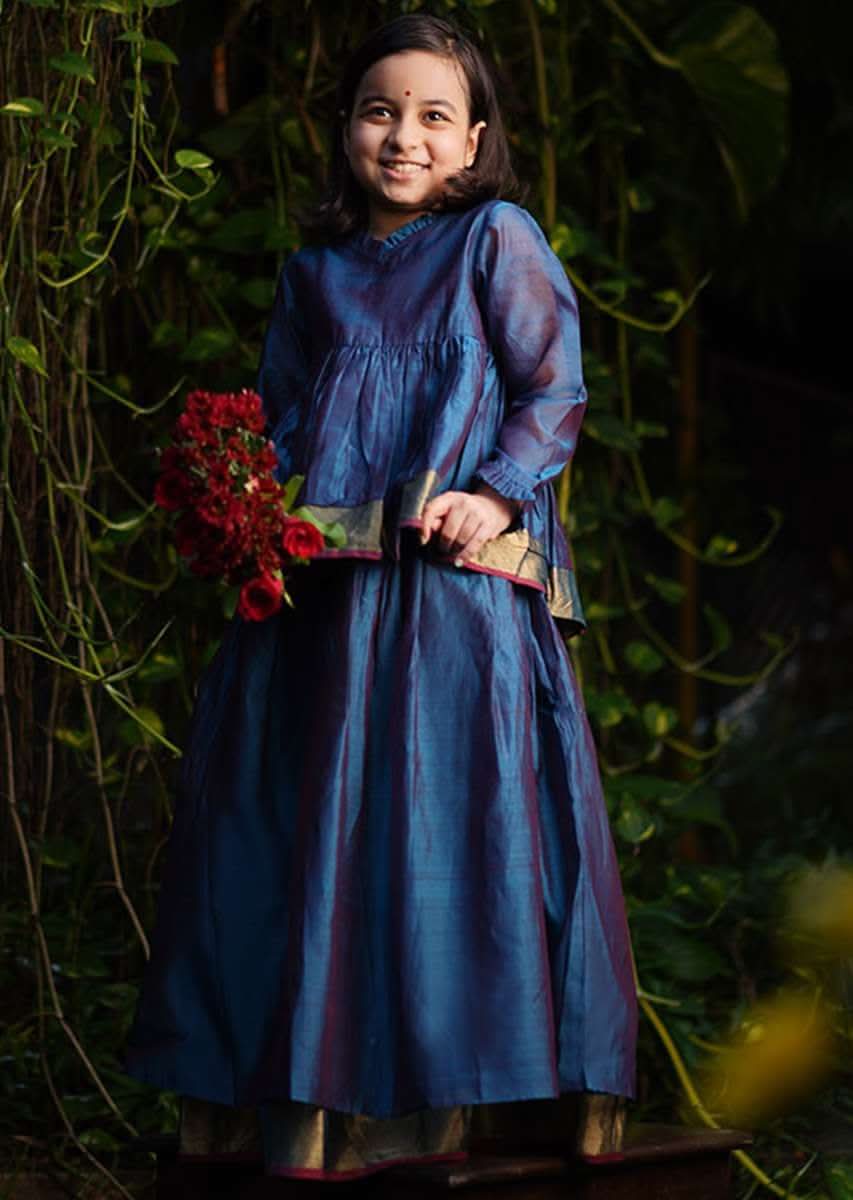 Kalki Girls Blue Dress In Cotton Silk With A Loose Comfort Fit And Tie Up At The Back By Love The World Today—